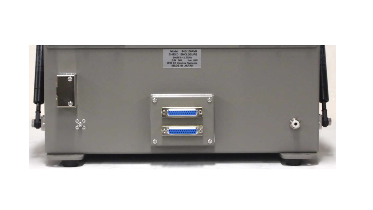 キャンドックスシステムズのシールドボックスは、開口部の四方(前後左右)とコネクタ、インターフェースからの 電波漏れを 測定し確実なシールド効果の検査を実施しています。
